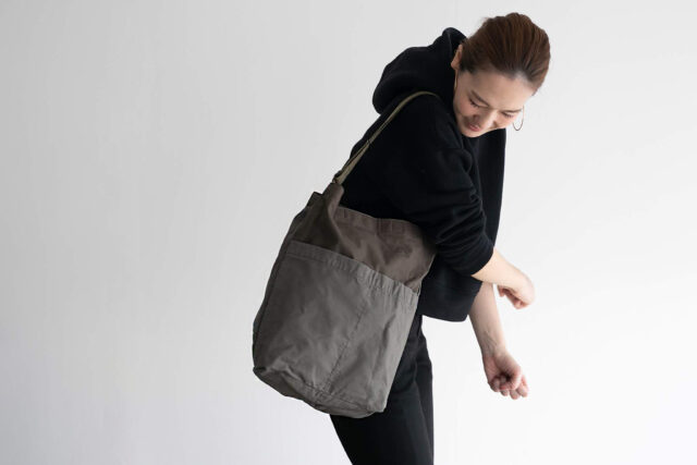 「工業用ミシンを用いて一針入魂で丁寧に仕上げています。特殊な構造のパターン設計、使いやすくて長持ちし、どの世代にも取り入れやすいミニマルなデザインへの落とし込みなど、使い手の所作を考慮したモノづくりを心がけて日々製作しています」